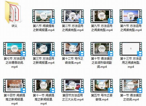 高二猿辅导秋季班理科崔研英语课程,百度网盘分享高清视频。资源目录第一节 语法填空之动词.mp4第二节 方法运用之阅读完型.mp4第三节 方法运用之新闻报道.mp4第四节方法运用之三大从句.mp4第五节 写作之感谢信.mp4第六节 方法运用之阅读完型.mp4第七节 方法运用之非谓语动词.mp4第八节 阅读提高之新闻报道.mp4第九节 方法运用之阅读完型.mp4第十节 语法填空之名词形容词副词.mp4第十一节 阅读提高之新闻报道.mp4第十二节 写作之咨询信.mp4第十三节 方法运用之阅读完型.mp4第十四节 阅读提高之新闻报道.mp4讲义\[课件]【同步课】方法运用之阅读完型.pdf讲义\[课件]【同步课】语法填空之动词.pdf讲义\[课件]【同步课】阅读提高之新闻报道.pdf讲义\[课件]【导学课】开学典礼暨课程导学(1).pdf讲义\[课件]【赠】精选名校试卷讲解(一).pdf讲义\高二英语讲义·985班·秋季班.pdf